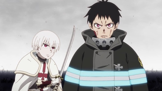 Shinra and Sho confront Haumea in Adolla. Haumea believes that humanity's collective unconscious harbors a wish for death. She kills Inca and Sumire right in front of Shinra and Sho. The brothers reject Haumea's words and launch an attack, but for some reason their blows don't reach her.